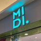 Letrero con logotipo LED iluminado desde el frente para publicidad comercial hecho a medida: estilo sin marco